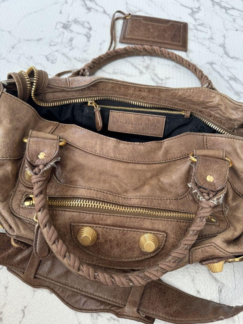 Authentic PreOwned Balenciaga City Medium size brown **Color** Brown Material genuine leatherThe color is dark brown ✖︎ with pink gold hardware.With a mirror. Medium size Sizewidth 38cmHeight 24cmThickness 10cmConditionOverall, the item is in beautiful condition.