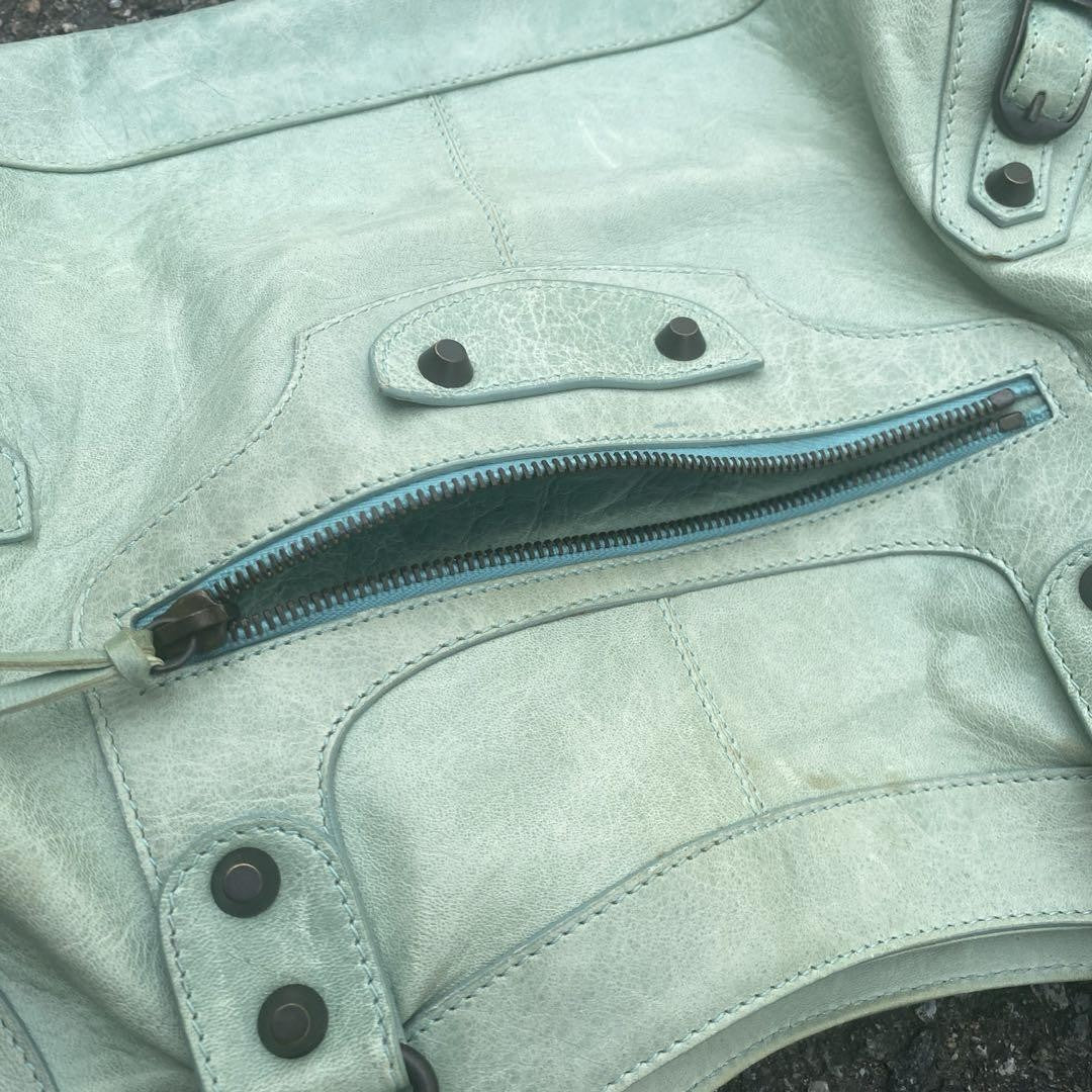 Authentic PreOwned balenciaga city part time y2k mint green back This is a very trendy handbag from Balenciaga's editor's series.COLORSmint green or turquoise (rare)ConditionOverall, the item is in beautiful condition.