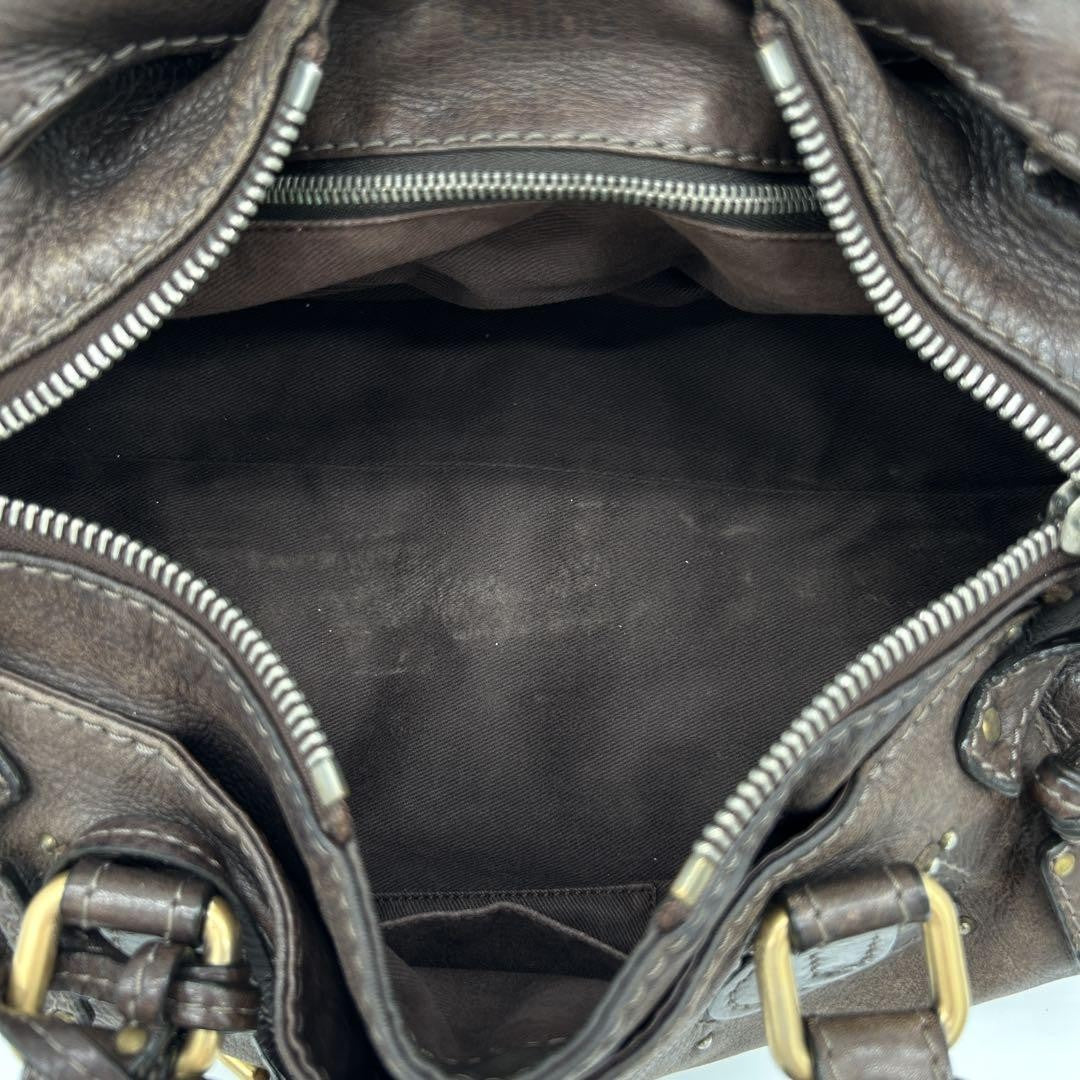 Authentic PreOwned Beautiful Chloe Paddington handbag padlocked leather dark brown Mini Boston padlock key leather gold hardwareOne shoulder dark brownSizeHeight 17cmwidth 36cmGusset 18cmHandle approx. 40cmConditionThe leather part has a little scuff, small scratches, and light dirt, but none of them are noticeable and do not bother you when you use it.Because it is a beautiful product overall, you can still use it for a long time.ColorDark brownMaterialleatherAccessoriespadlockkey