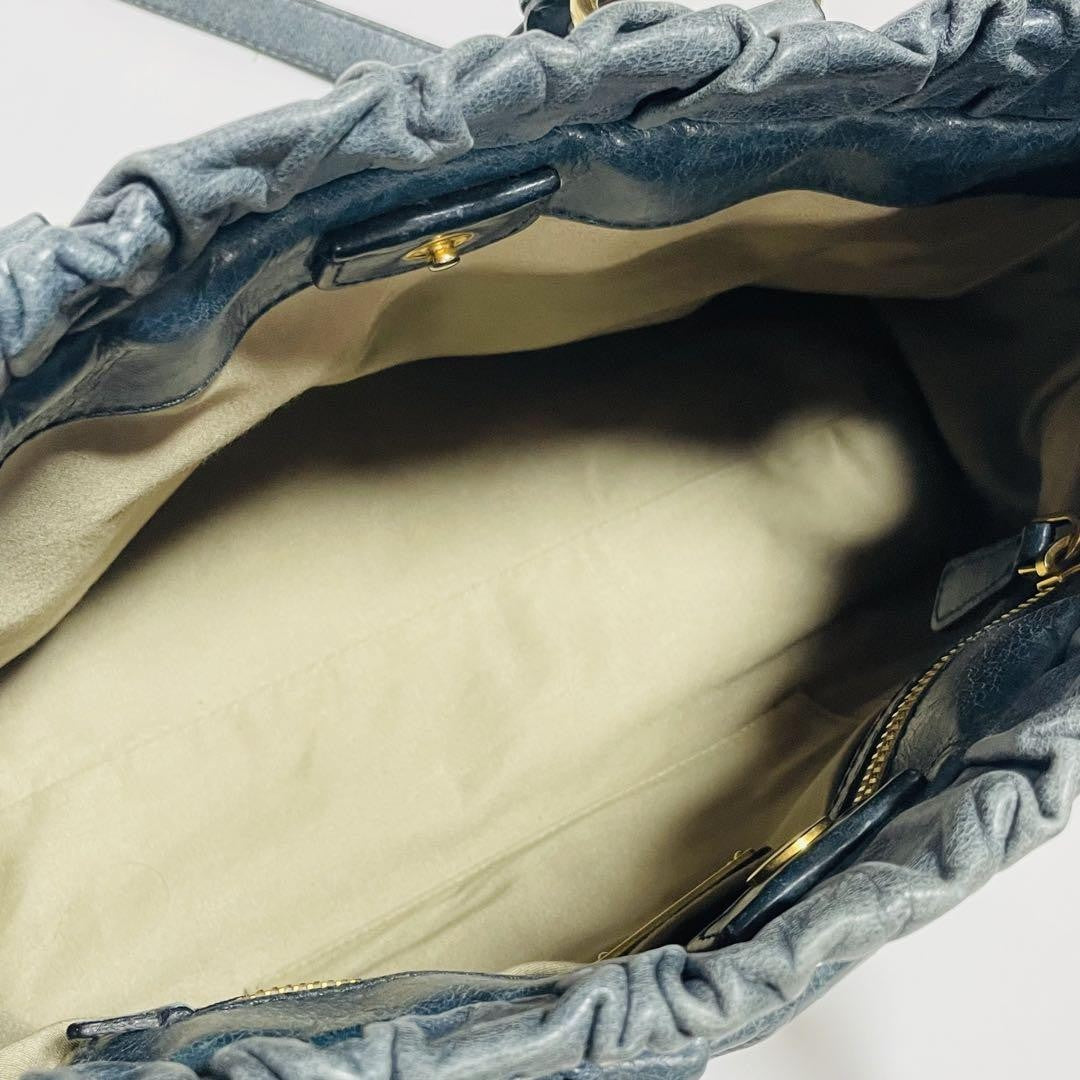 Authentic PreOwned miu miu Vitello Lux Ribbon 2way Bag Nav Rare color navy **Size**(Approx.) Height: 22 cm, width: 32.5 cm, gusset: 12 cmConditionOverall, the item is in beautiful condition.