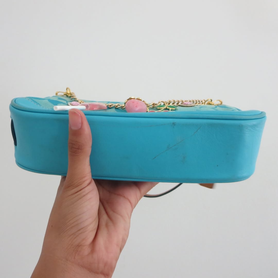 A rare and stylish find, this Coach blue demi mini bag offers a pop of color and a sleek design, making it the perfect accessory for any collection.
